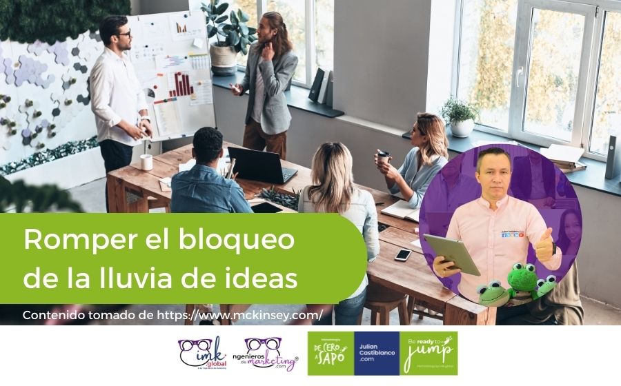 ¿Cuál es una buena manera de pensar en la lluvia de ideas en su empresa? “Si tuviera una organización y hubiera un pozo de petróleo en la propiedad, haría todo lo posible para extraer ese recurso natural y utilizarlo para su crecimiento”, dice Josh Linkner, fundador y director ejecutivo de cinco empresas de tecnología y autor de Grandes pequeños avances: cómo las innovaciones pequeñas y cotidianas generan resultados de gran tamaño . “Tenemos el proverbial pozo de petróleo dentro de toda nuestra gente, y qué vergüenza si no dejamos que lo usen”. En una entrevista de Author Talks con McKinsey, Linkner analiza cómo los líderes pueden «democratizar la creatividad y la innovación» mediante el desarrollo de formas sistematizadas para desbloquear los depósitos de ideas latentes dentro de sus organizaciones. Pensar en las nuevas ideas como chispas en lugar de ideas completamente preparadas o respaldadas es una forma de reforzar el enfoque iterativo para la generación de ideas durante la lluvia de ideas. Para los miembros del equipo retenidos por el miedo, de expresar una mala idea, ser juzgados o enfrentar represalias, la «lluvia de roles» o la lluvia de ideas en el carácter también puede ser un enfoque liberador.